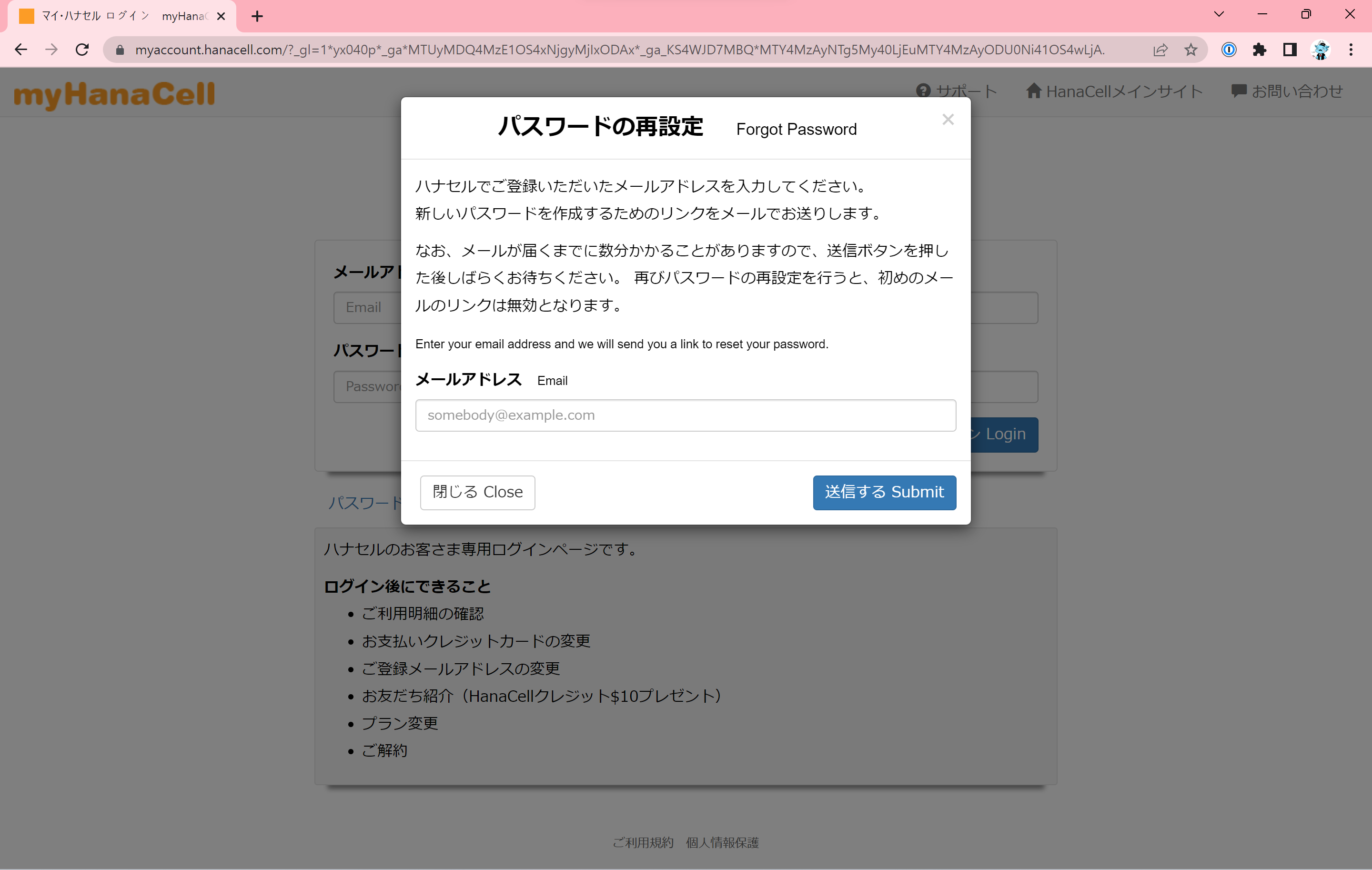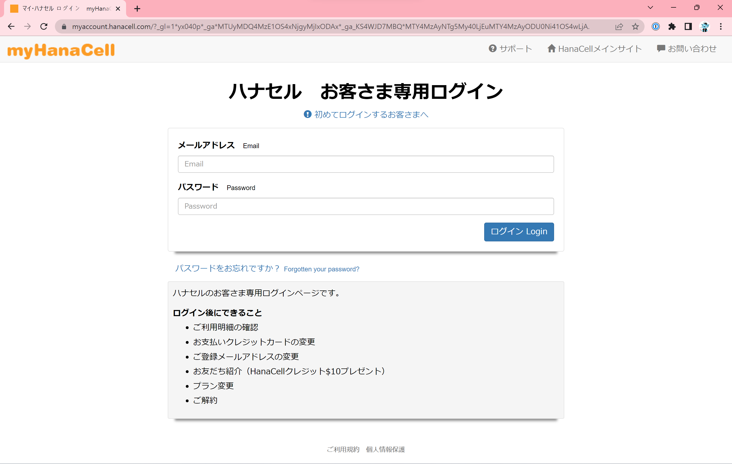 マイ・ハナセル ログイン myHanaCell Log-in