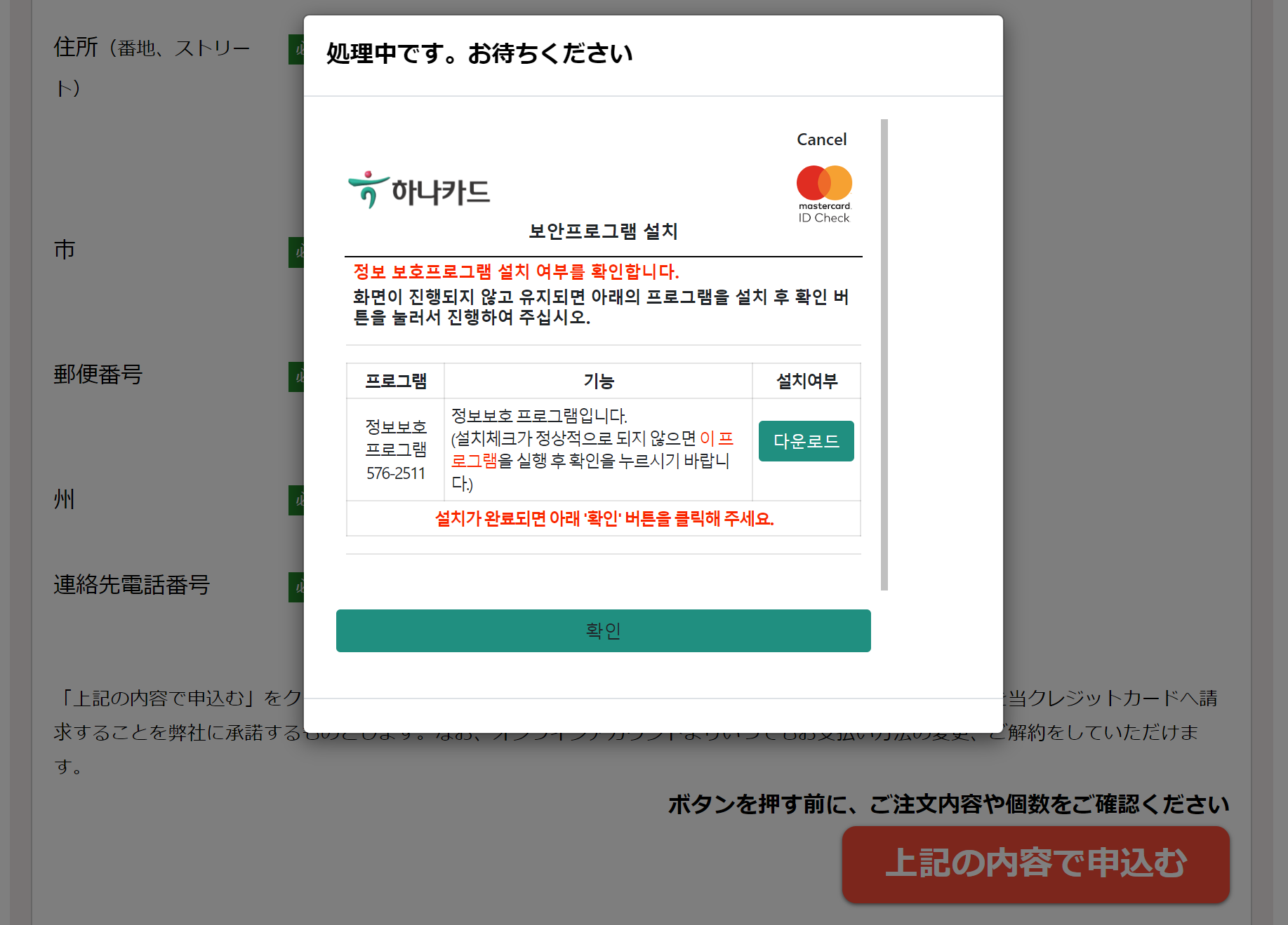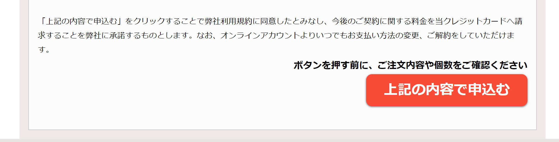 모두 입력하셨으면 빨간색 「上記の内容で申込む」를 눌러 신청을 완료해 줍니다.