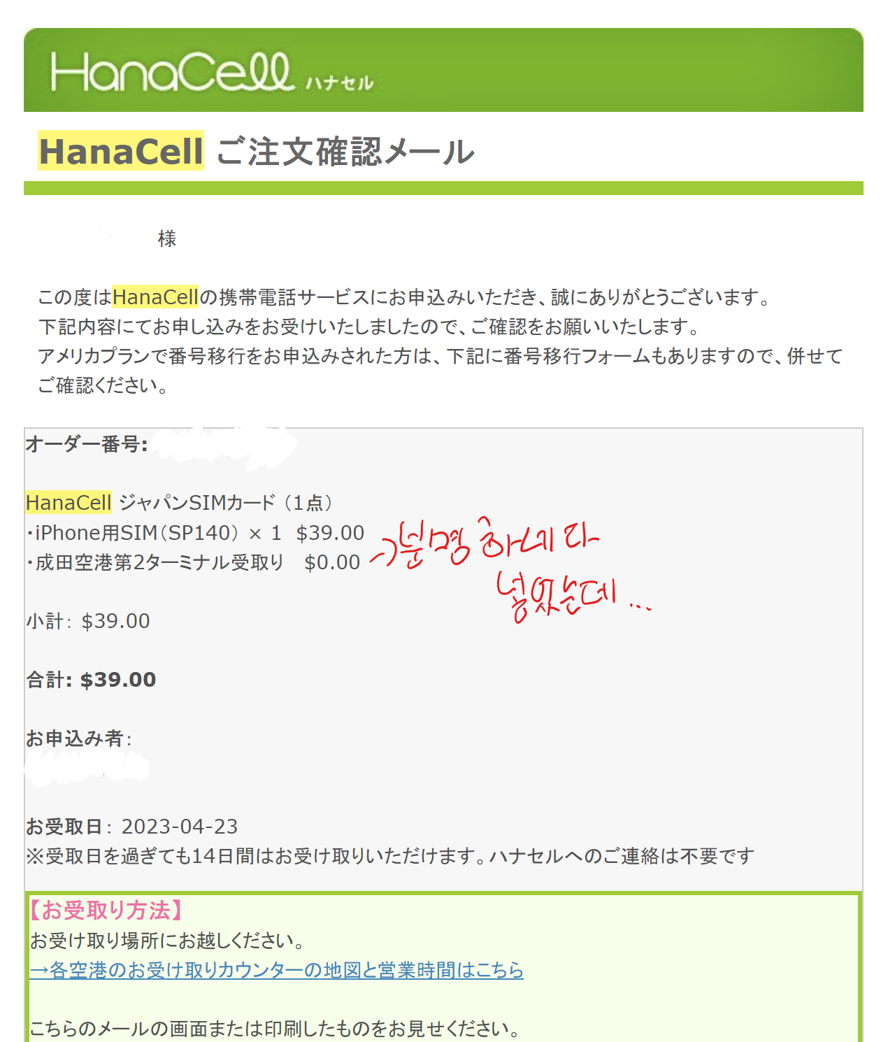 저는 하네다 공항으로 신청한 줄 알았는데, 나리타 2터미널로 잘못 누른 모양이더라구요.