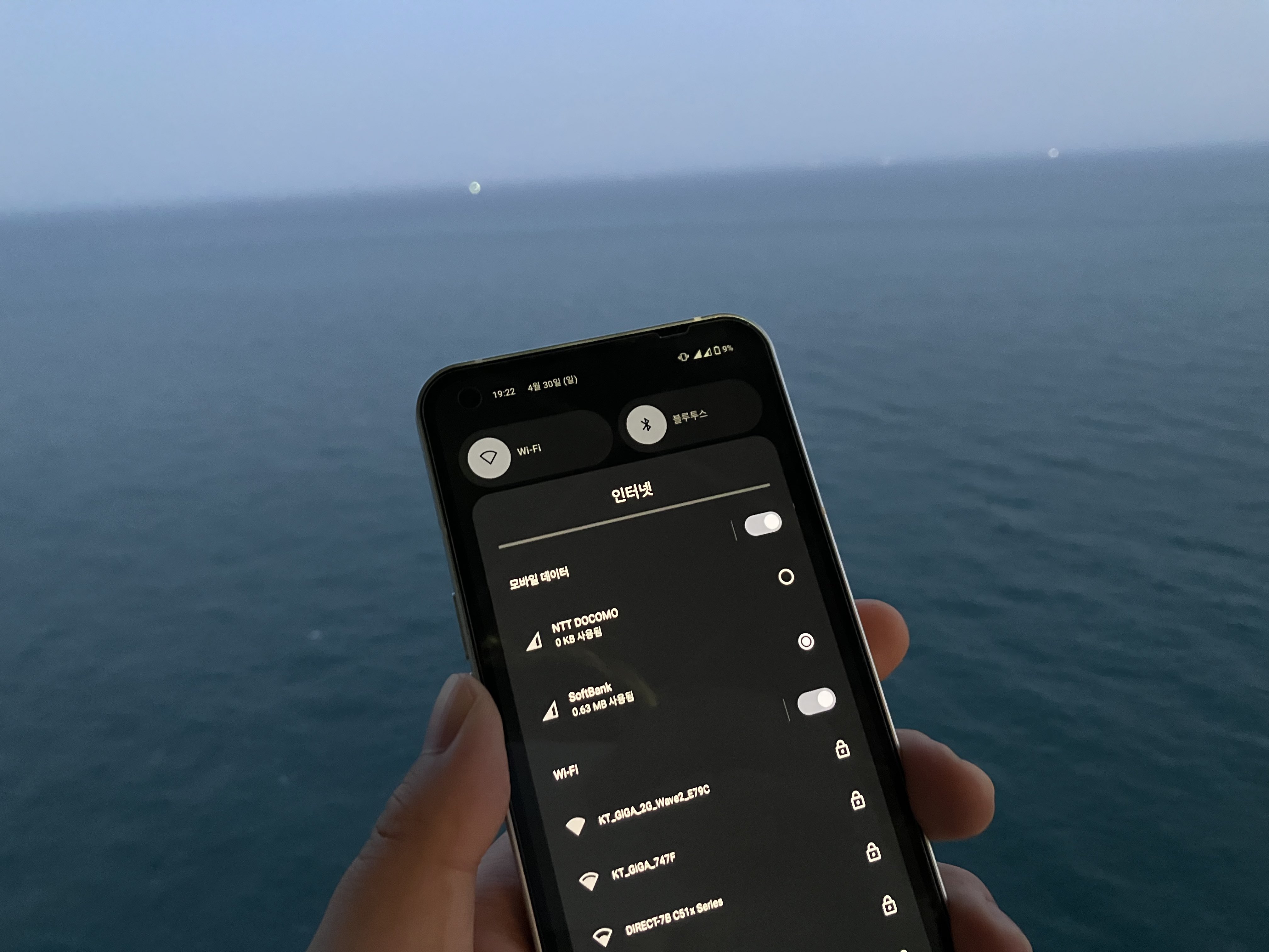 (다시 확인해 보니 작성자님이 수정을 해주셨네요. 감사합니다!!)글 작성일 이틀 전인 23년 4월 30일, 밑져야 본전이지 않느냐..라는 생각에 직접 제가 부산에 가서 시도해봤는데요.KDDI(au), 도코모가 잡히는 달맞이길 해월정 등 다른 장소에서는 모두 신호가 아예 잡히지 않거나 연결이 불가능했으나, 유일하게 태종대 전망대에서 가능한 것을 확인했습니다.다만 태종대에서도 전망대 난간에 가까이 가야 겨우 3G정도 잡히는 정도지만, 전화 문자 모두 정상 사용은 가능했습니다.데이터는 시도하는 기종 별로 사용 가능 여부가 달랐습니다. (제가 가지고 있던 기기 중 갤럭시 노트 10+, Nothing Phone (1)에서는 가능했지만 갤럭시 Z플립 4에서는 데이터는 불가능했습니다.)