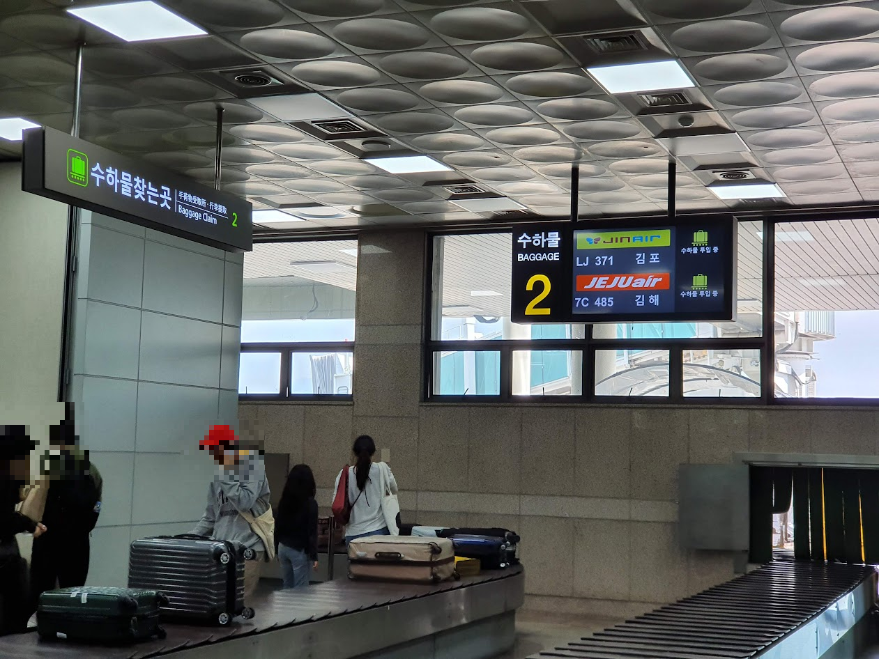 아쉽지만 광주공항에서도 촬영은 불가능하니 촬영 없이 수하물벨트까지 직행했는데, Welcome to Gwangju 위에 '김해'라는 출발지가 표시되는게 정말 너무 어색하더라구요.