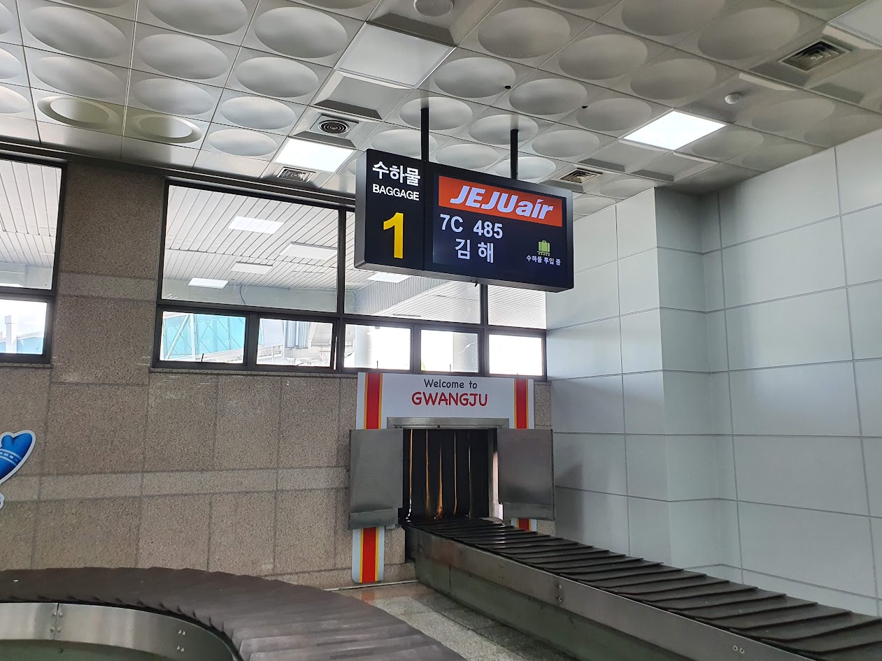 아쉽지만 광주공항에서도 촬영은 불가능하니 촬영 없이 수하물벨트까지 직행했는데, Welcome to Gwangju 위에 '김해'라는 출발지가 표시되는게 정말 너무 어색하더라구요.