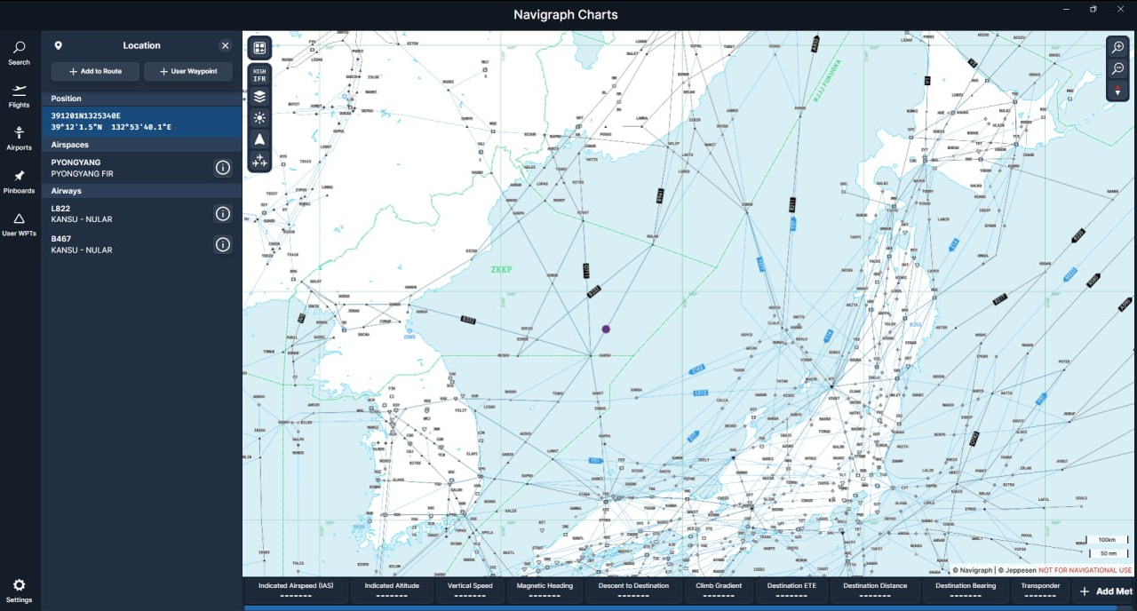 북한 영공은 동쪽으로 넓은 범위를 갖기 때문에, 한반도에서 조금 떨어진 이 곳까지도 북한이 관제권을 가지고 있어요.