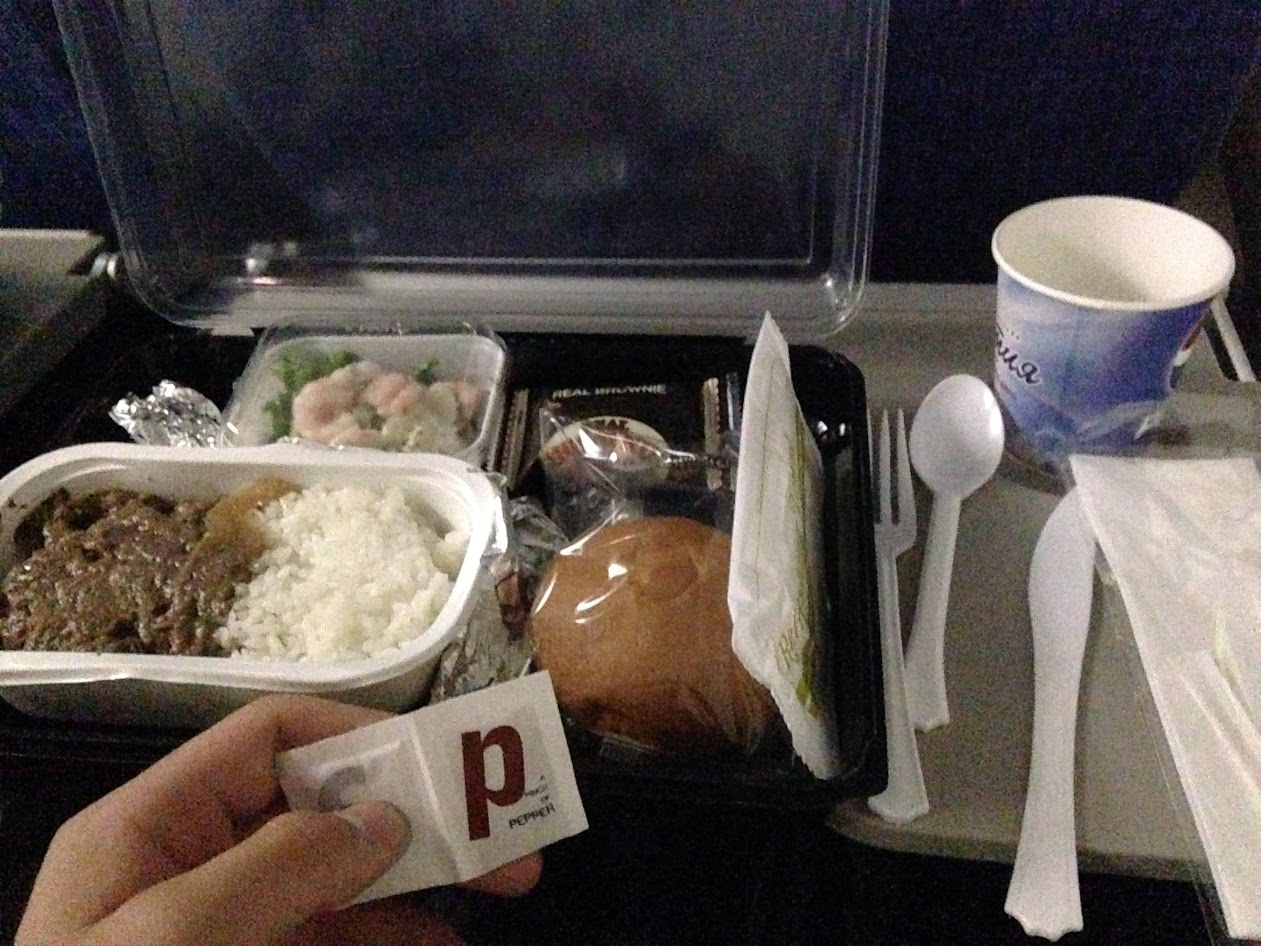 이륙 후 한 30여분 지났을까, 드디어 기내식이 도착했습니다.
