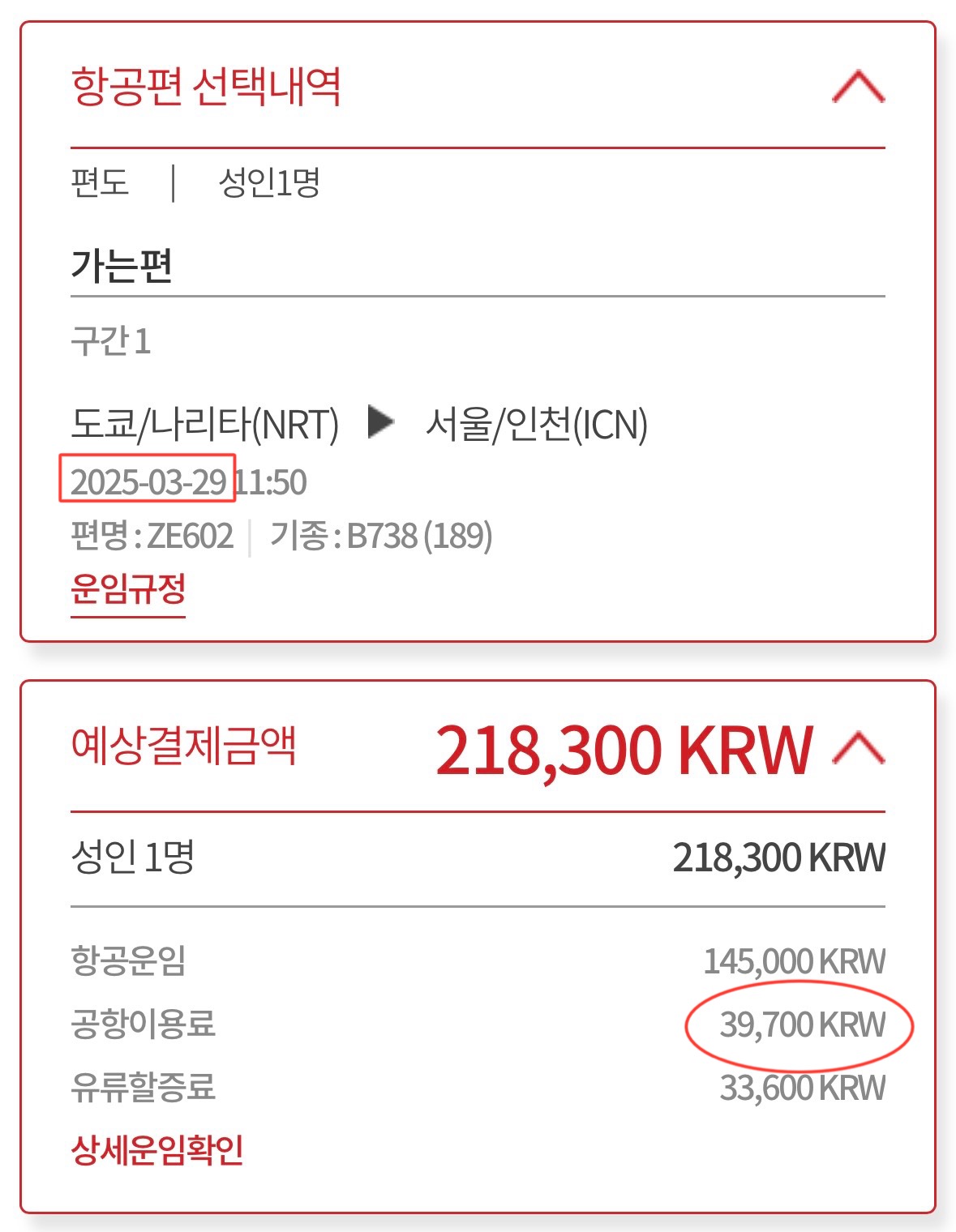 3월 29일 출발편까지는 39,700원이었던 나리타공항의 공항이용료가 3월 30일 출발편부터는 29,300원으로 인하됩니다.