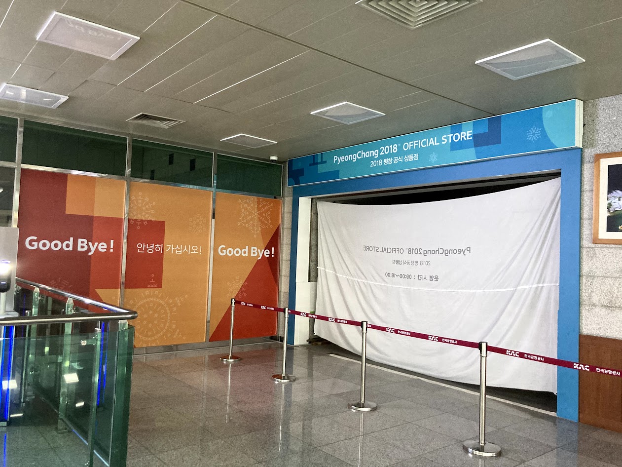 마스크를 쓰고 있는 평창올림픽의 마스코트, 수호랑과 반다비를 등지고 서면 바로 국내선 구역입니다.